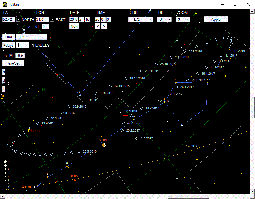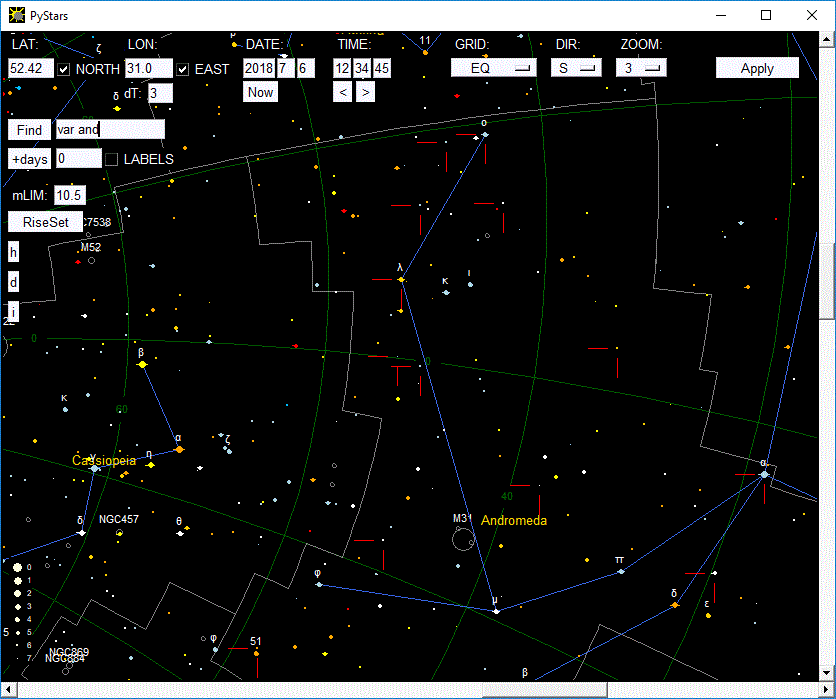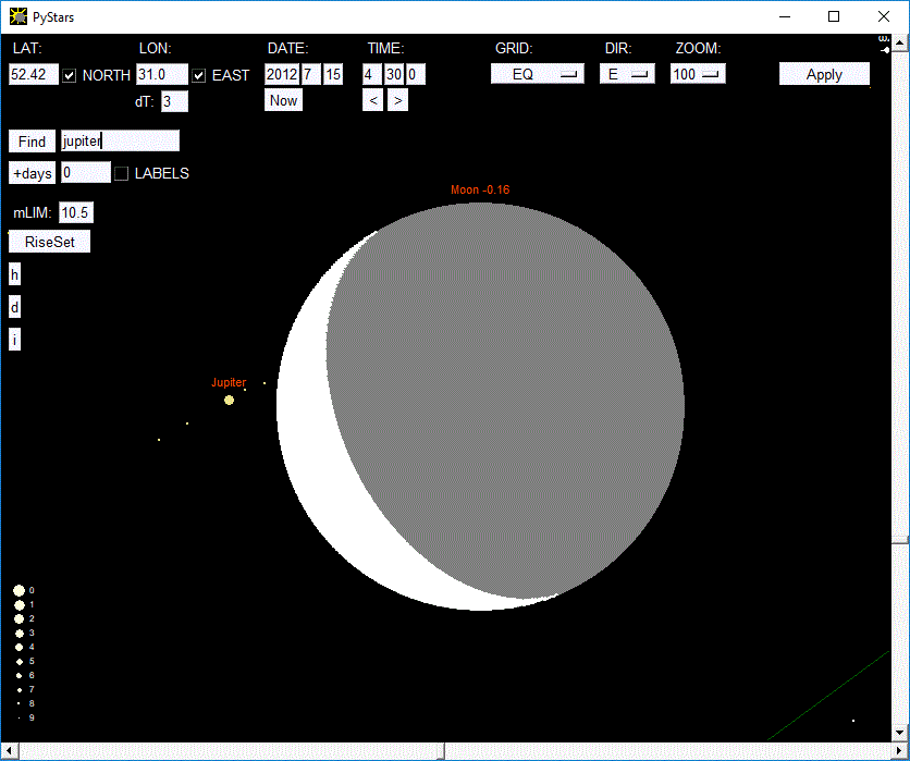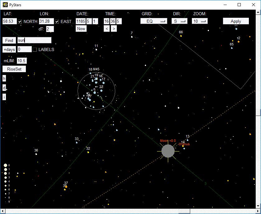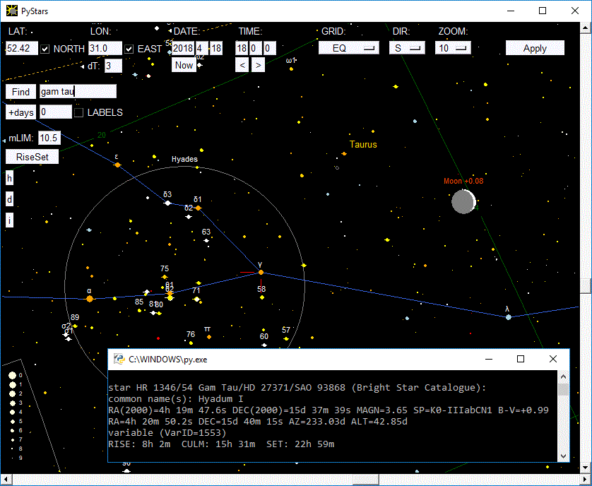 PyStars - это программа-планетарий на языке Python3 (скачать PyStars v.20191001).