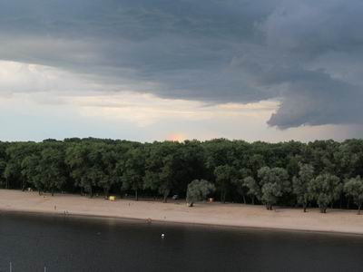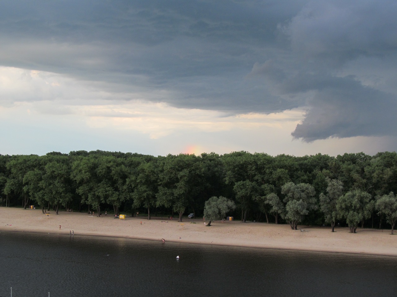 Красивая грозовая туча. На втором снимке видна маленькая радуга.